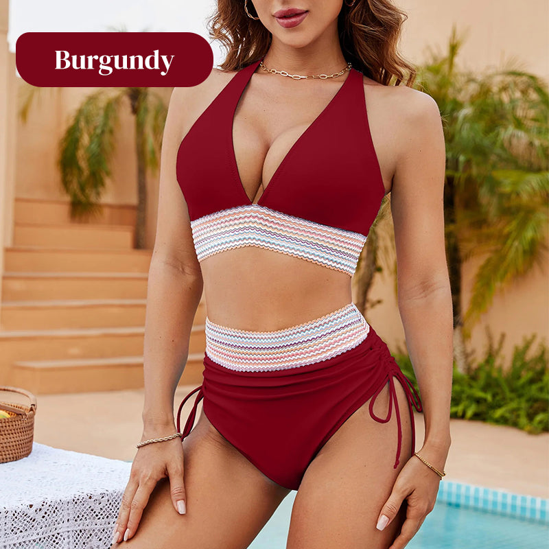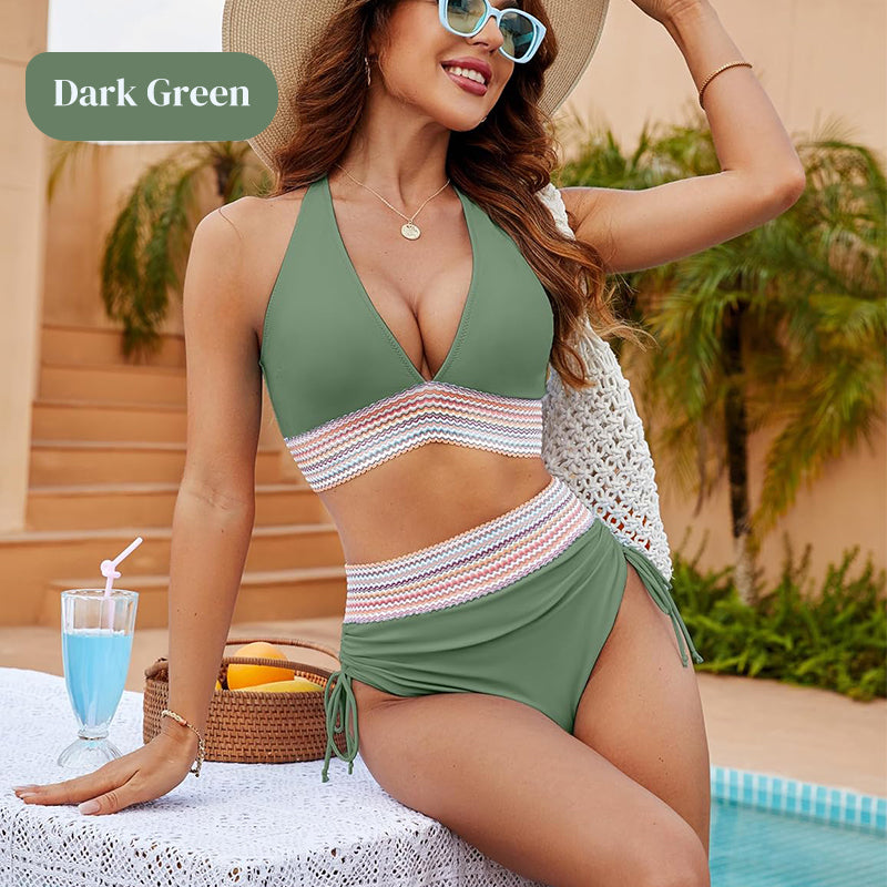 💃Vacation Sale 49% OFF💃Tummy Control Color Block Bikini Set
