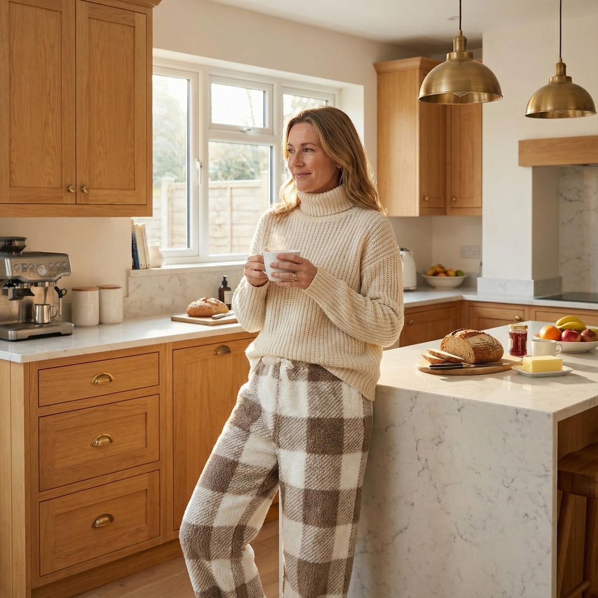 • Lounging at home, working from the sofa, or quick cold-day errands